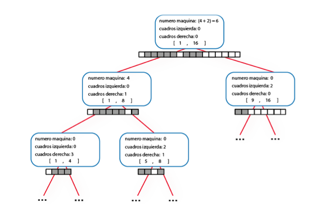 El numero de maquinas es igual a el numero de maquinas de la raíz mas max( 0, los cuadros del lado izquierdo – M) + max( 0, los cuadros del lado derecho – M ) , donde M es el tamaño de la maquina.